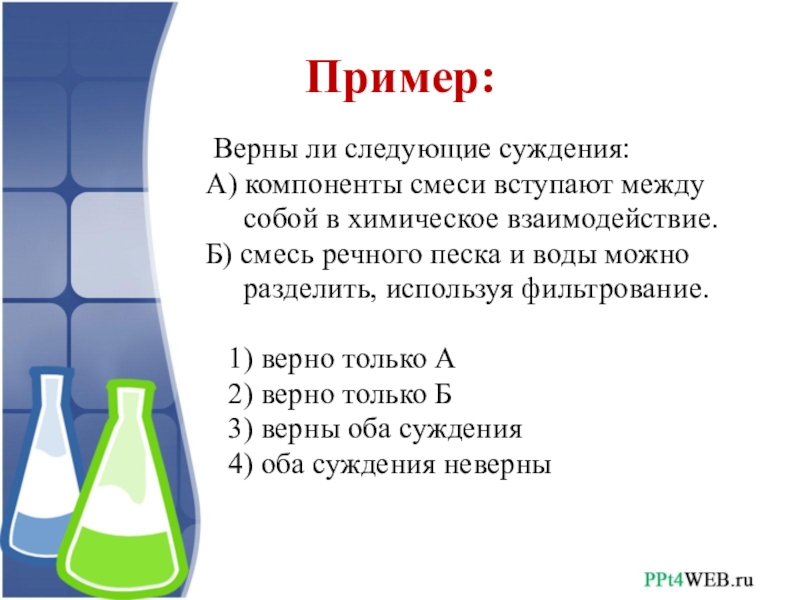 Задача испытуемого – выбрать правильный вариант утверждения.