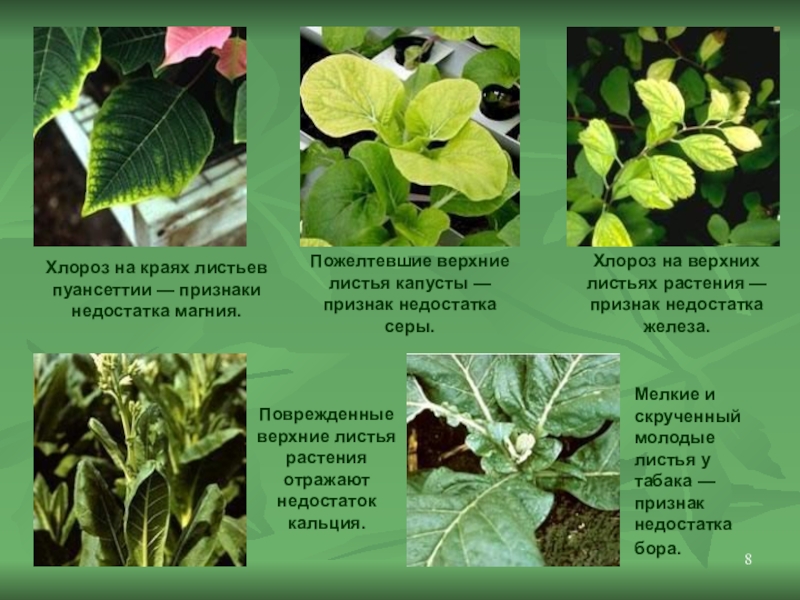 Хлороз на верхних листьях растения — признак недостатка железа.