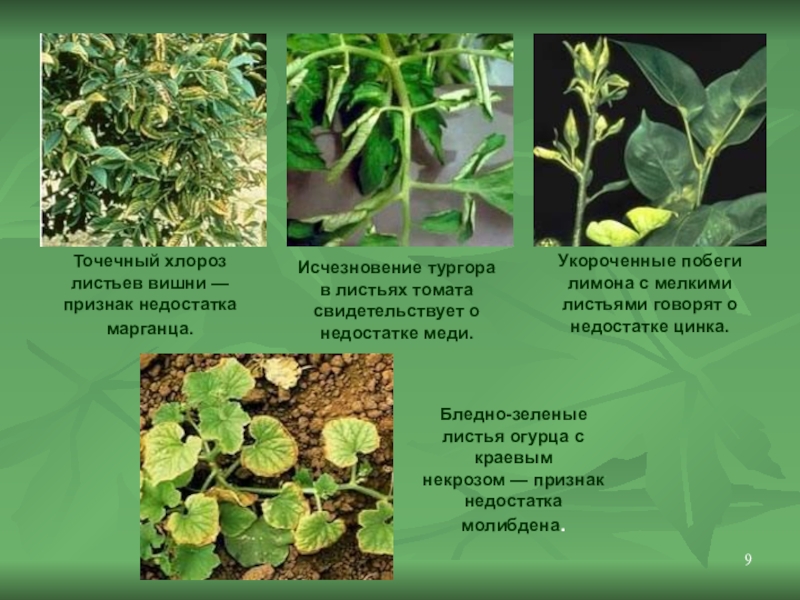 Бледно-зеленые листья огурца с краевым некрозом — признак недостатка молибдена.