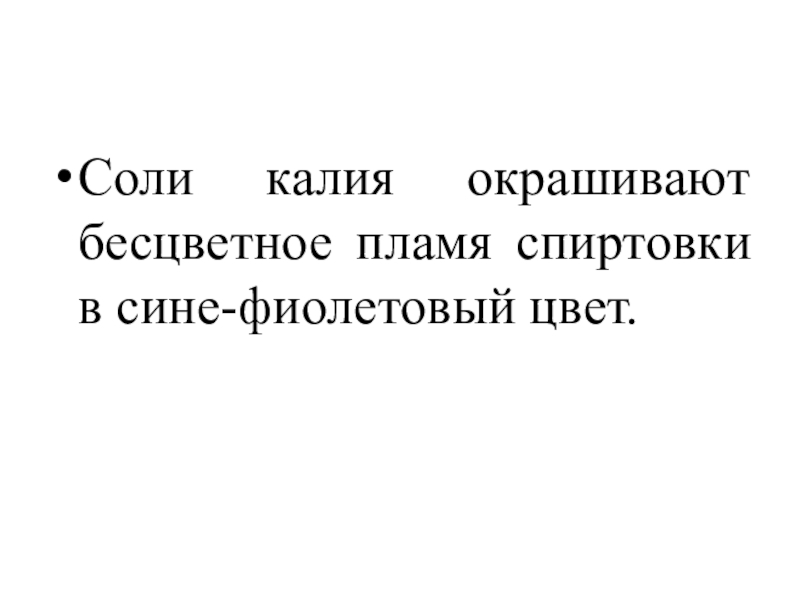 Слайд 17Соли калия окрашивают бесцветное пламя спиртовки в сине-фиолетовый цвет.