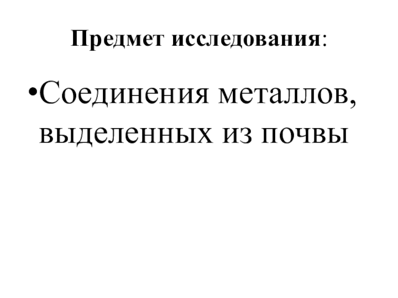 Предмет исследования:Соединения металлов, выделенных из почвы