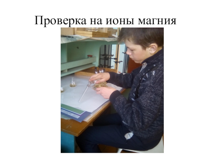 Слайд 14Проверка на ионы магния