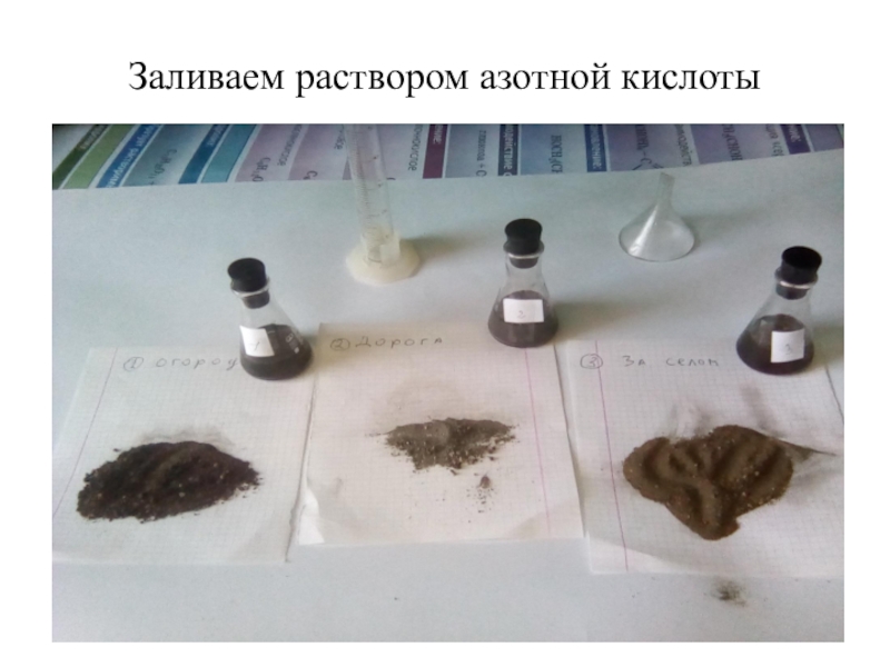 Слайд 9Заливаем раствором азотной кислоты