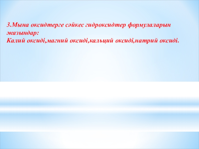 Слайд 103.Мына оксидтерге сәйкес гидроксидтер формулаларын жазындар: