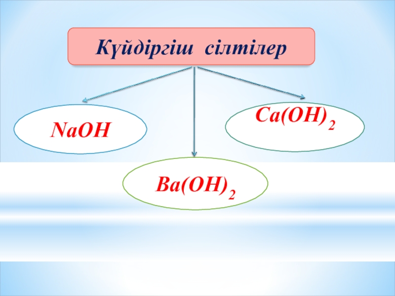Күйдіргіш сілтілерNaOНBa(ОН)2Ca(ОН)2