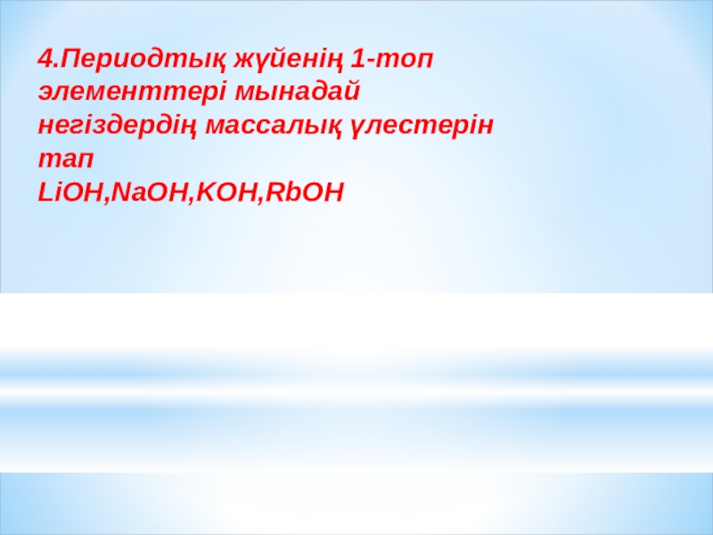 Слайд 114.Периодтық жүйенің 1-топ элементтері мынадай негіздердің массалық үлестерін тап