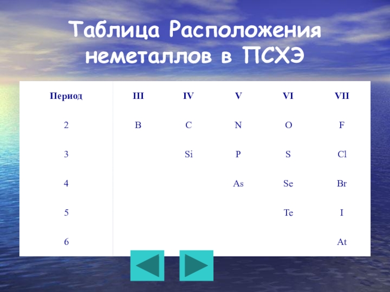 Слайд 3Таблица Расположения неметаллов в ПСХЭ