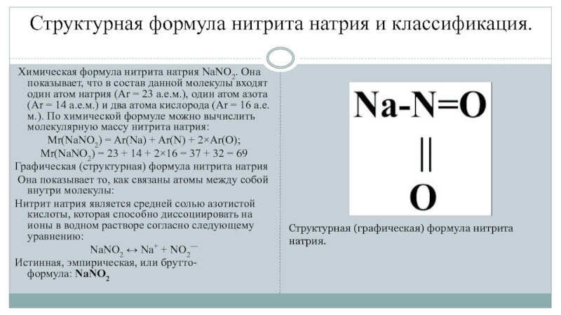 Слайд 6Структурная формула нитрита натрия и классификация.