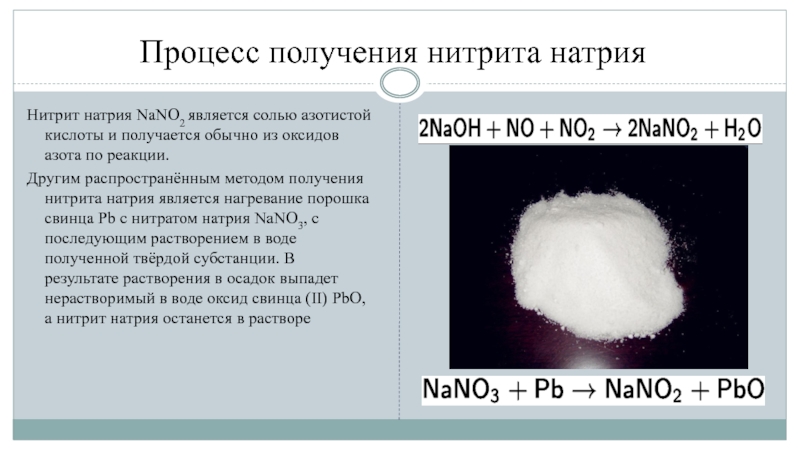 Нитрит натрия представляет собой соль азотистой кислоты - бесцветные или слегка