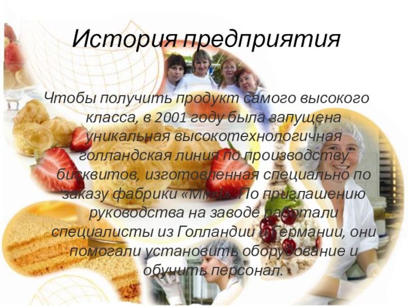 запущена уникальная высокотехнологичная голландская линия по производству бисквитов, изготовленная специально по заказу фабрики «Mirel». По приглашению руководства на заводе работали специалисты из Голландии и Германии, они помогали установить оборудование и обучить персонал.