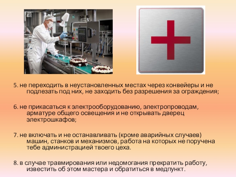 Слайд 75. не переходить в неустановленных местах через конвейеры и не подлезать