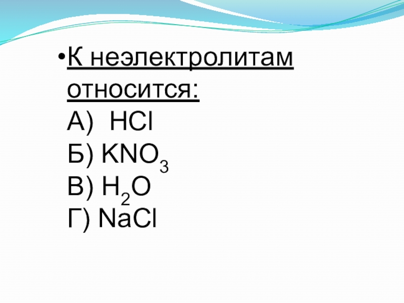 К неэлектролитам относится:А) HCl      Б) KNO3