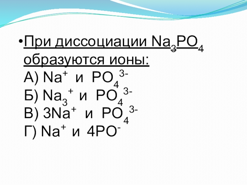 Слайд 5При диссоциации Na3PO4 образуются ионы:
