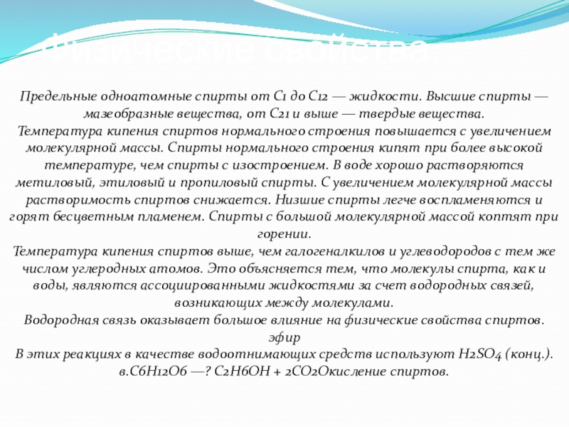 Этиловый спирт (этанол) С2Н5ОН — бесцветней жидкость, легко