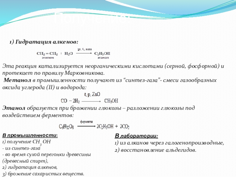 2) гидратация алкенов,