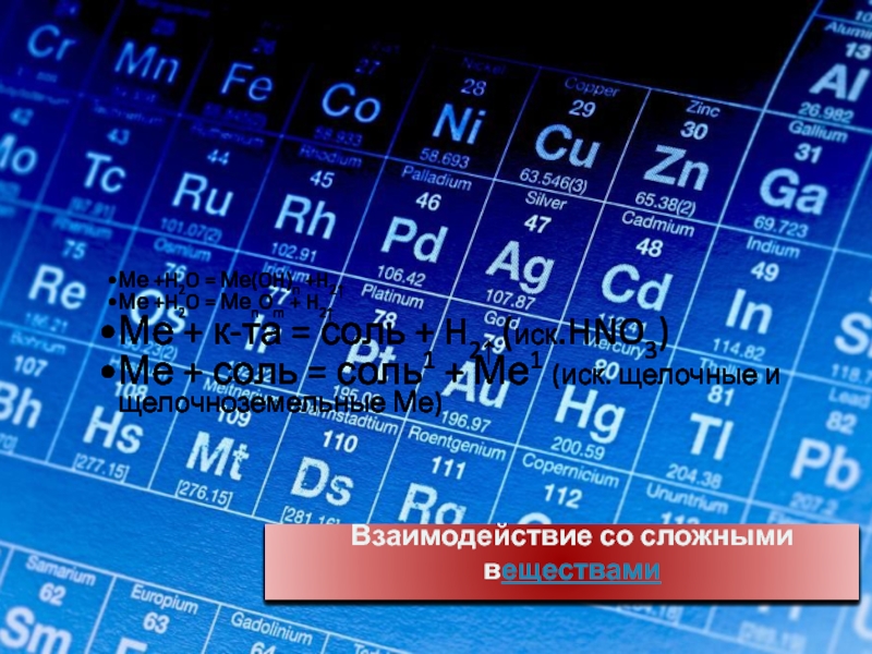 Ме, стоящие в ряду за водородом, не взаимодействуют с водой;