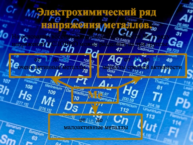 Ме, стоящий в ряду левее, вытесняет правее стоящий Ме из растворов его солей;