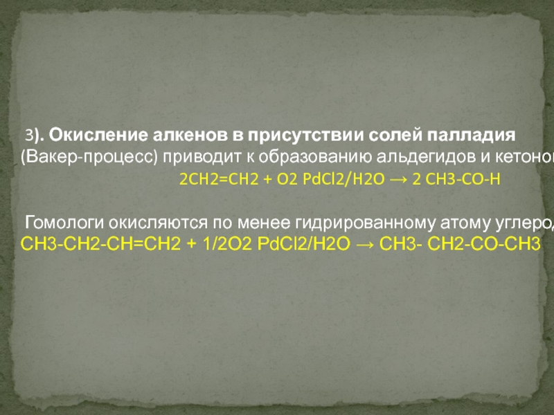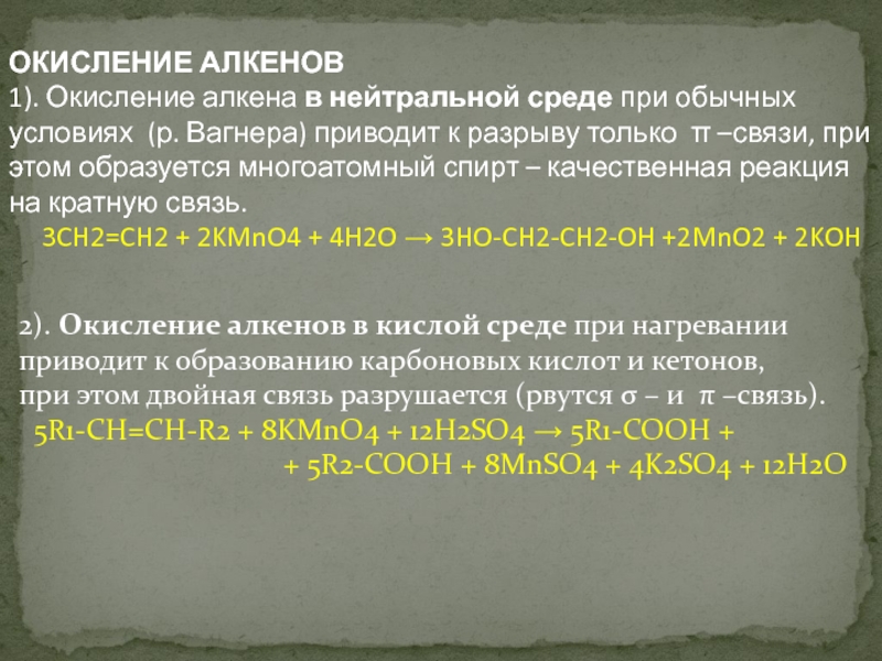 2). Окисление алкенов в кислой среде при нагревании