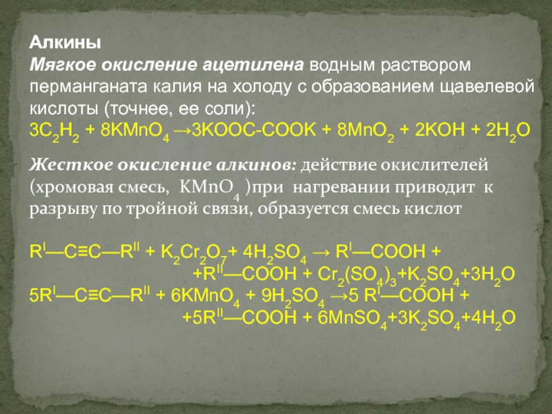 Жесткое окисление алкинов: действие окислителей