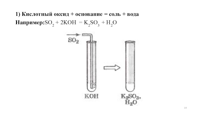 Слайд 141) Кислотный оксид + основание = соль + вода