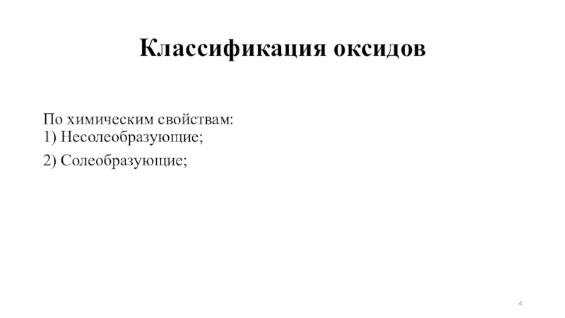 Классификация оксидовПо химическим свойствам: 1) Несолеобразующие;2) Солеобразующие;