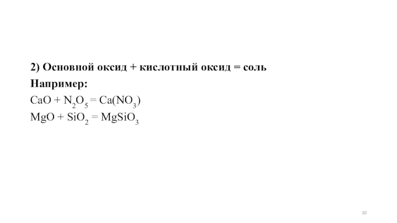 Слайд 102) Основной оксид + кислотный оксид = соль