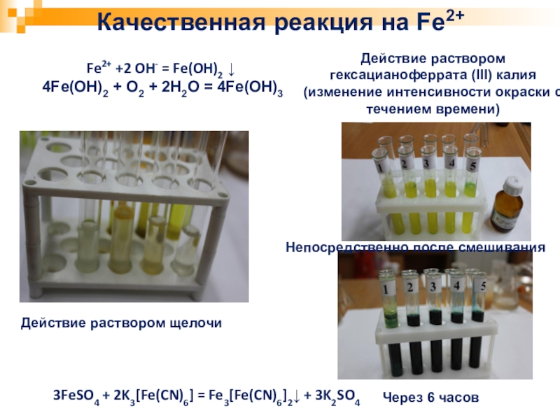 Fe2+ +2 OH- = Fe(OH)2 ↓