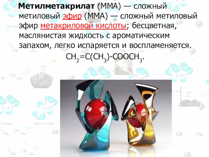 Слайд 116 Метилметакрилат (ММА) — сложный метиловый эфир (ММА) — сложный
