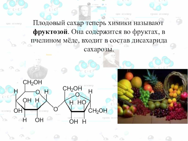 Слайд 101 Плодовый сахар теперь химики называют фруктозой. Она содержится во