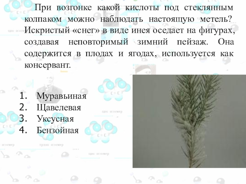 Слайд 91 Эта кислота является промежуточным продуктом обмена веществ у теплокровных