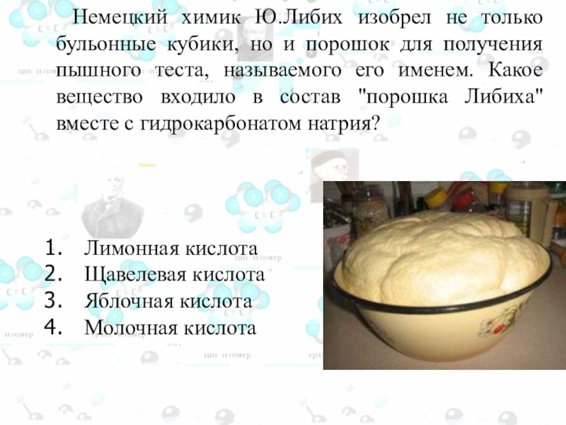 Слайд 90 «Порошок Либиха» – это смесь гидрокарбоната натрия и лимонной