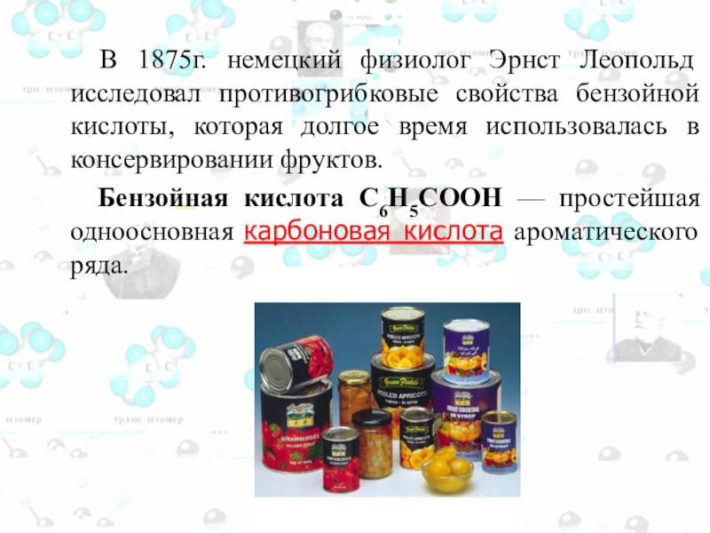 веществу эти ягоды могут долго храниться без сахара. Человек, зная свойства этого вещества, стал использовать его в пищевой промышленности в качестве консерванта.