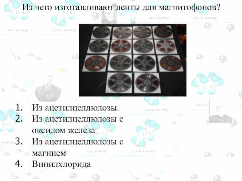 Слайд 112 Из чего изготавливают ленты для магнитофонов?