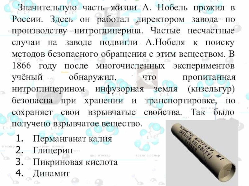 Слайд 108 В 1845 году немецкий химик Христиан Шенбейн нечаянно пролил