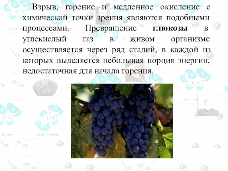 являются подобными процессами. Превращение глюкозы в углекислый газ в живом организме осуществляется через ряд стадий, в каждой из которых выделяется небольшая порция энергии, недостаточная для начала горения.