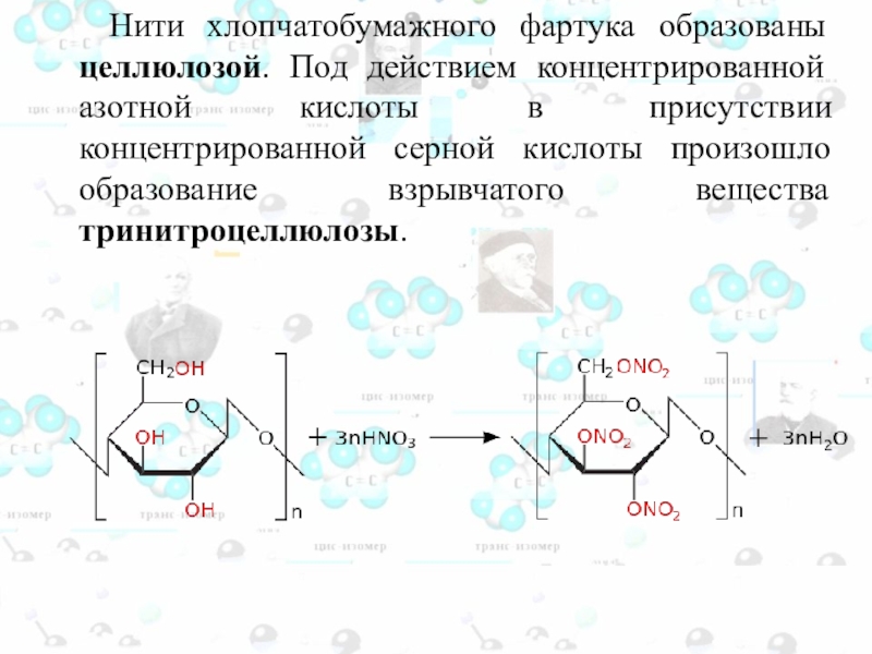 Слайд 109 Нити хлопчатобумажного фартука образованы целлюлозой. Под действием концентрированной азотной