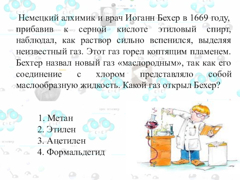 Слайд 8 Иоганн Бехер открыл этилен, образующийся по реакции: