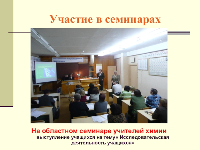 Участие в семинарахНа областном семинаре учителей химии выступление учащихся на тему» Исследовательская деятельность учащихся»