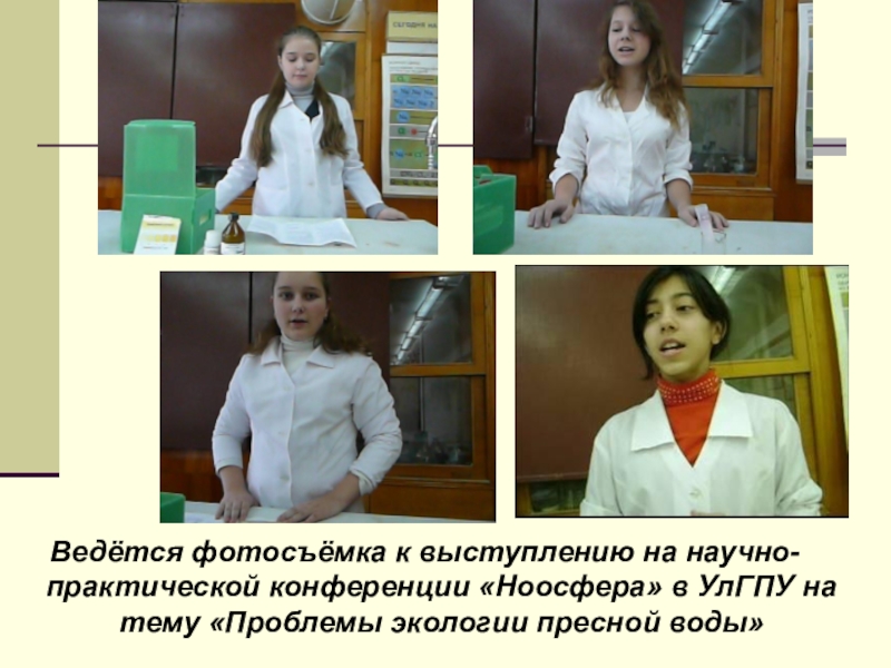 Ведётся фотосъёмка к выступлению на научно-практической конференции «Ноосфера» в УлГПУ на тему «Проблемы экологии пресной воды»
