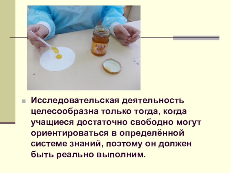 Исследовательская деятельность целесообразна только тогда, когда учащиеся достаточно свободно могут ориентироваться в определённой системе знаний, поэтому он