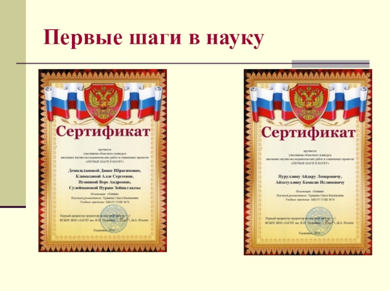 химика (Всероссийский детский конкурс «Первые шаги в науке») Игонина В.,Керимова К. (лауреаты)