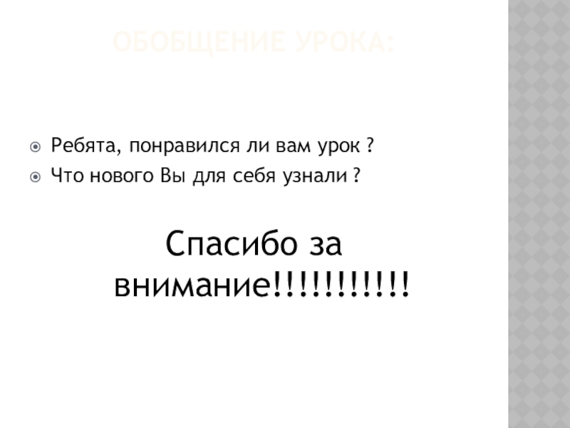 Это сайт презентаций, где можно хранить и обмениваться своими презентациями, докладами, проектами, шаблонами в формате PowerPoint с другими пользователями. Мы помогаем школьникам, студентам, учителям, преподавателям хранить и обмениваться учебными материалами.