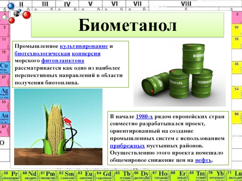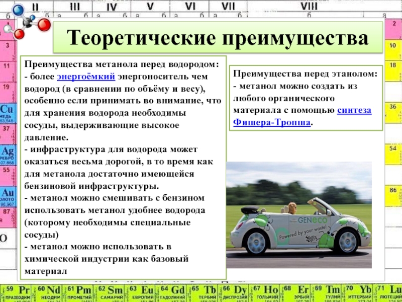 - метанол можно создать из любого органического материала с помощью синтеза Фишера-Тропша.