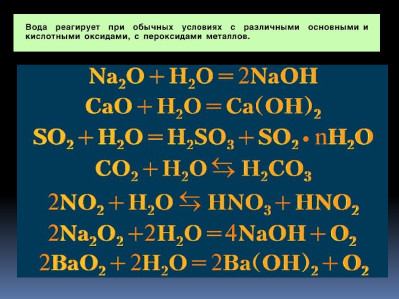 Вода вступает в реакцию оксидами неметаллов с образованием соответствующих