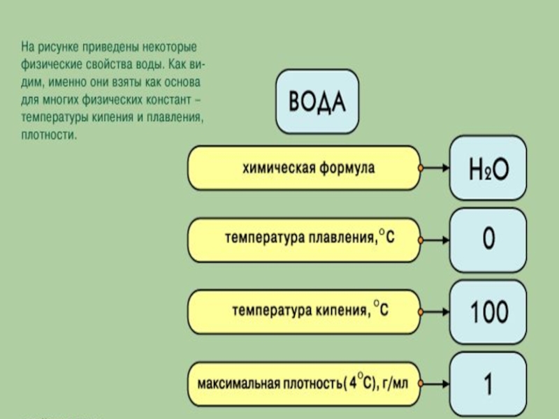 Презентация, доклад на тему Основные химические и физические свойства воды.