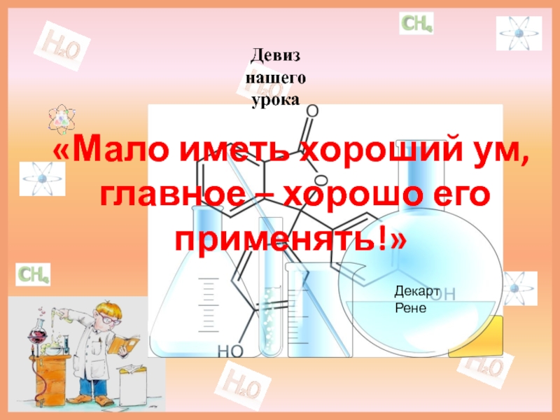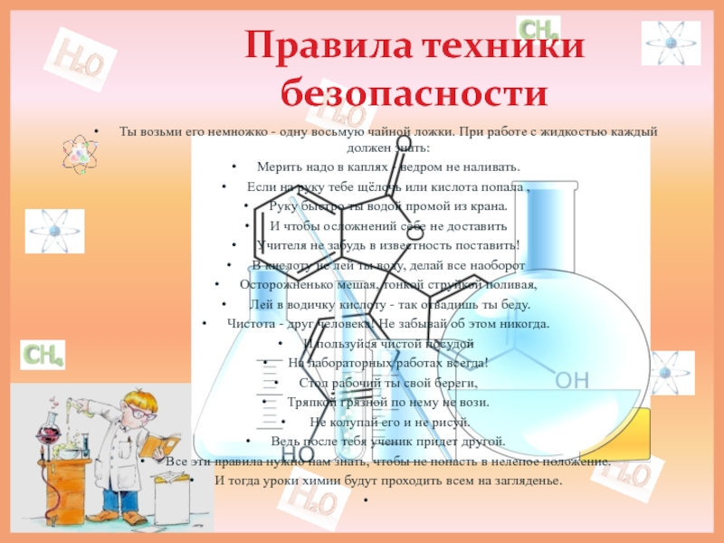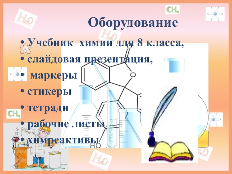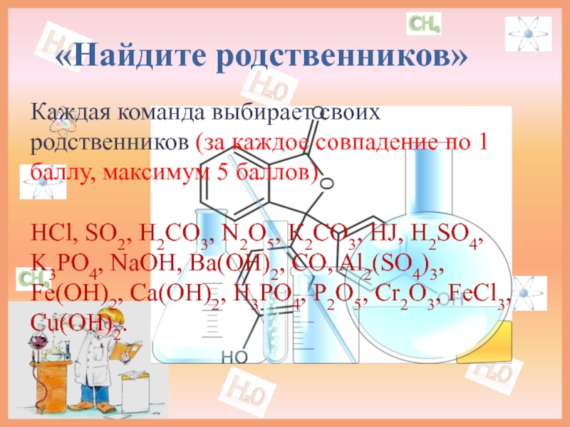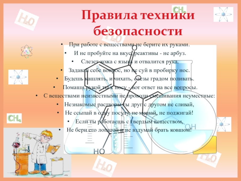 Слайд 2на демонстрационном столе стоит много разных склянок. Что находится внутри каждой