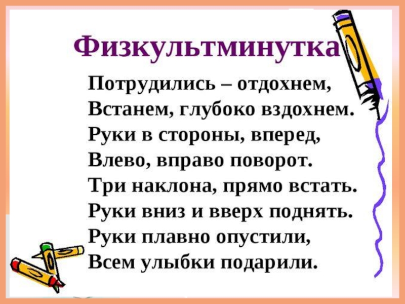 Слайд 27Физическая минутка Соответствие движению (игра).