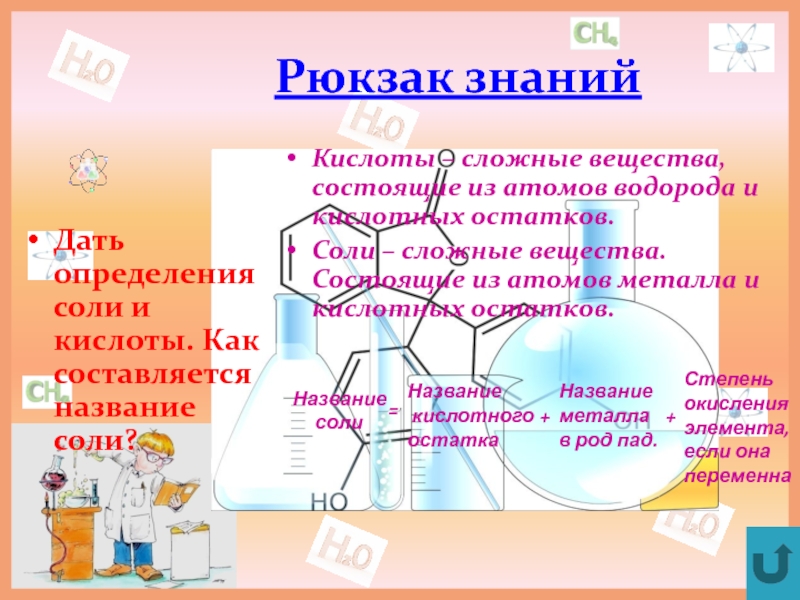 Соли – сложные вещества. Состоящие из атомов металла и кислотных остатков.