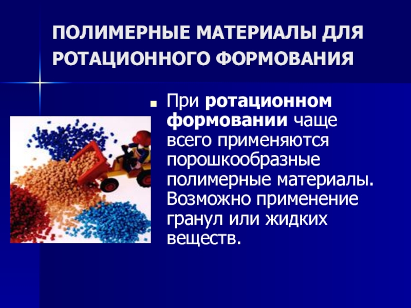 Слайд 10ПОЛИМЕРНЫЕ МАТЕРИАЛЫ ДЛЯ РОТАЦИОННОГО ФОРМОВАНИЯ