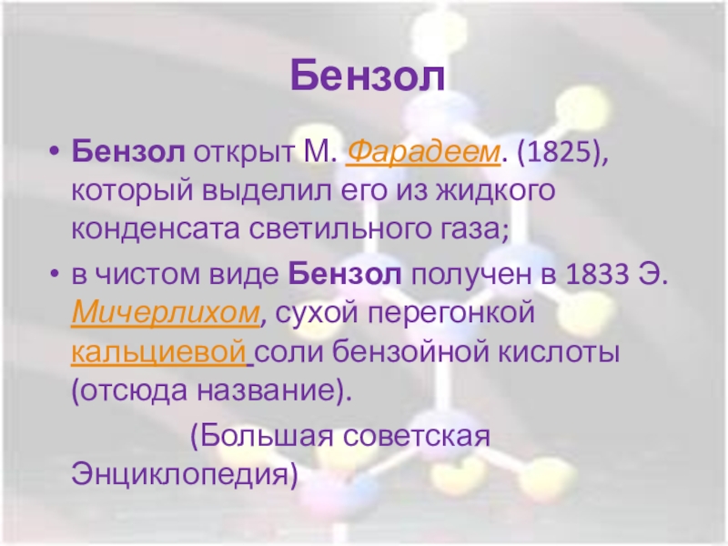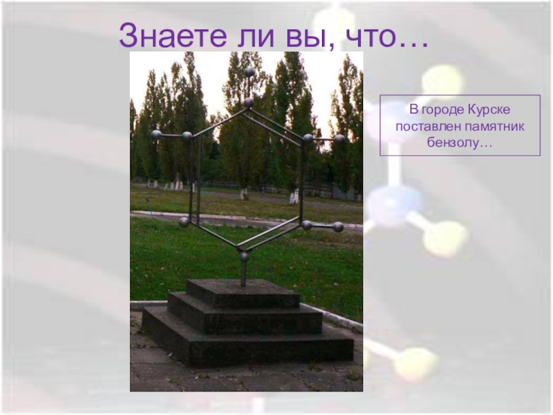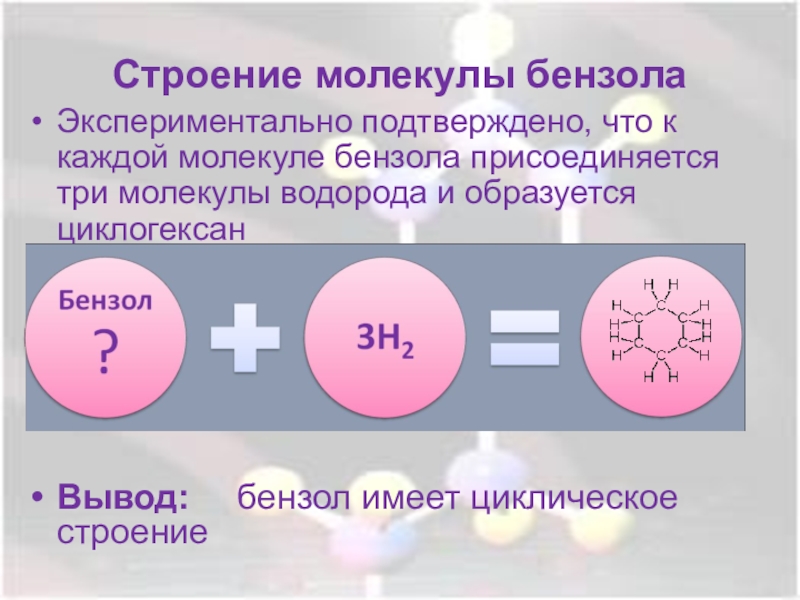 Вывод: бензол имеет циклическое строение